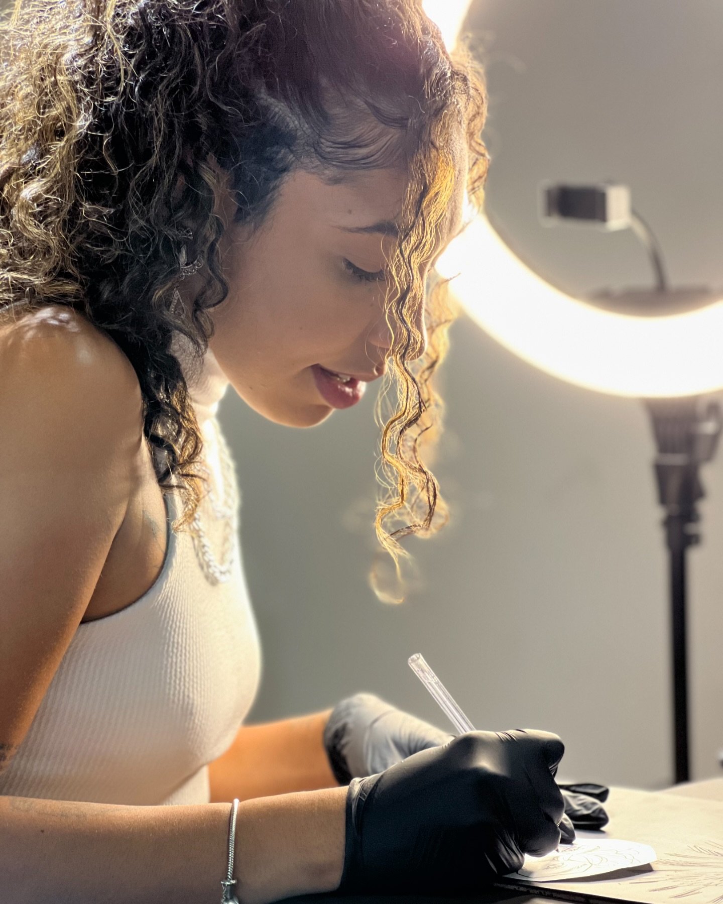 Tenho 26 anos e há 7 anos me encontrei na tatuagem, mas o cuidado com pessoas sempre fez parte da minha história. Antes de viver da arte, me formei como técnica em enfermagem e atuei no CTI do Hospital Odilon Behrens durante a pandemia. Foi ali que aprendi que responsabilidade e precisão não são detalhes, são princípios.